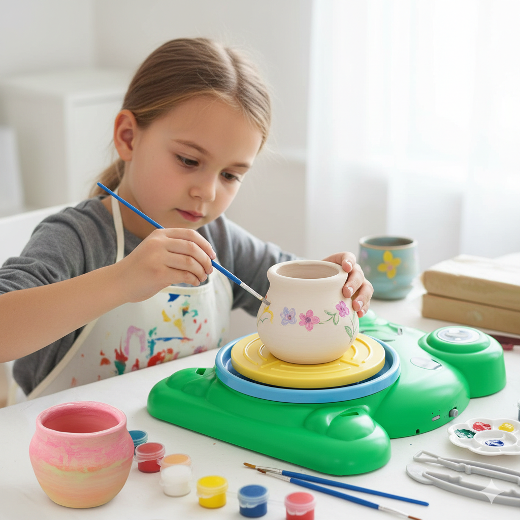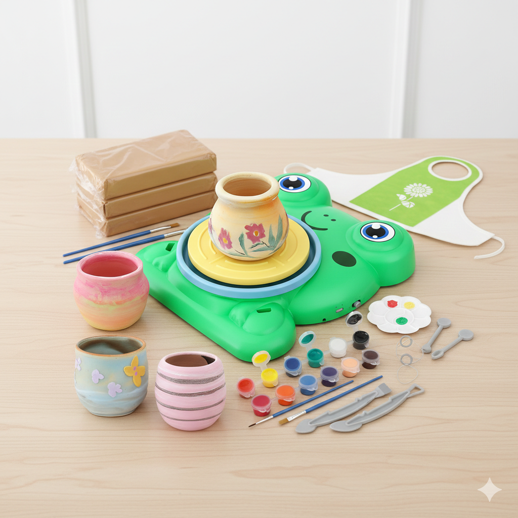 Nema potrebe za kupovinom dodatnog pribora. Set dolazi sa električnim točkom koji olakšava oblikovanje, specijalnim alatom za preciznu obradu gline i paletom boja za finalno ukrašavanje. Dete može odmah da postane pravi mali umetnik.