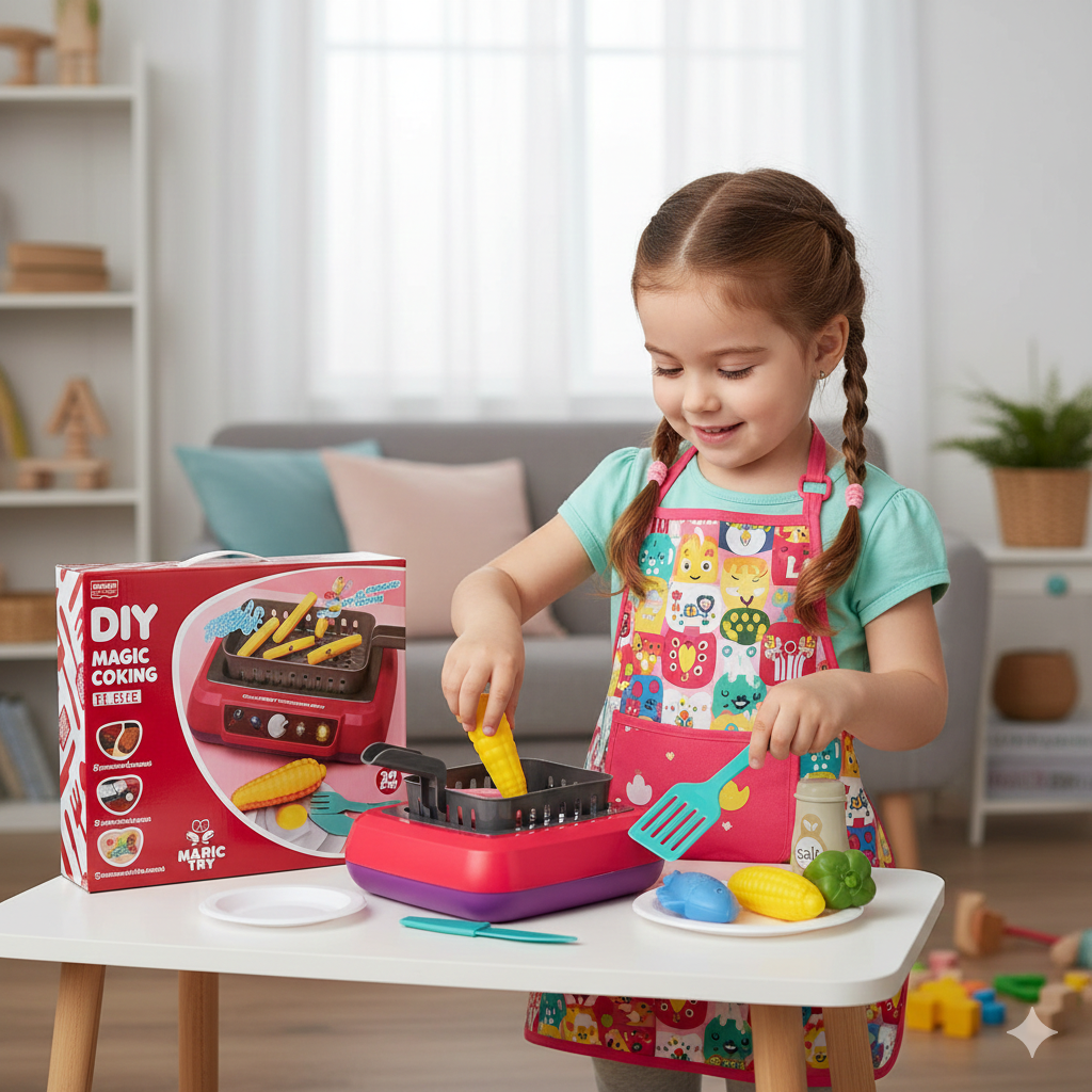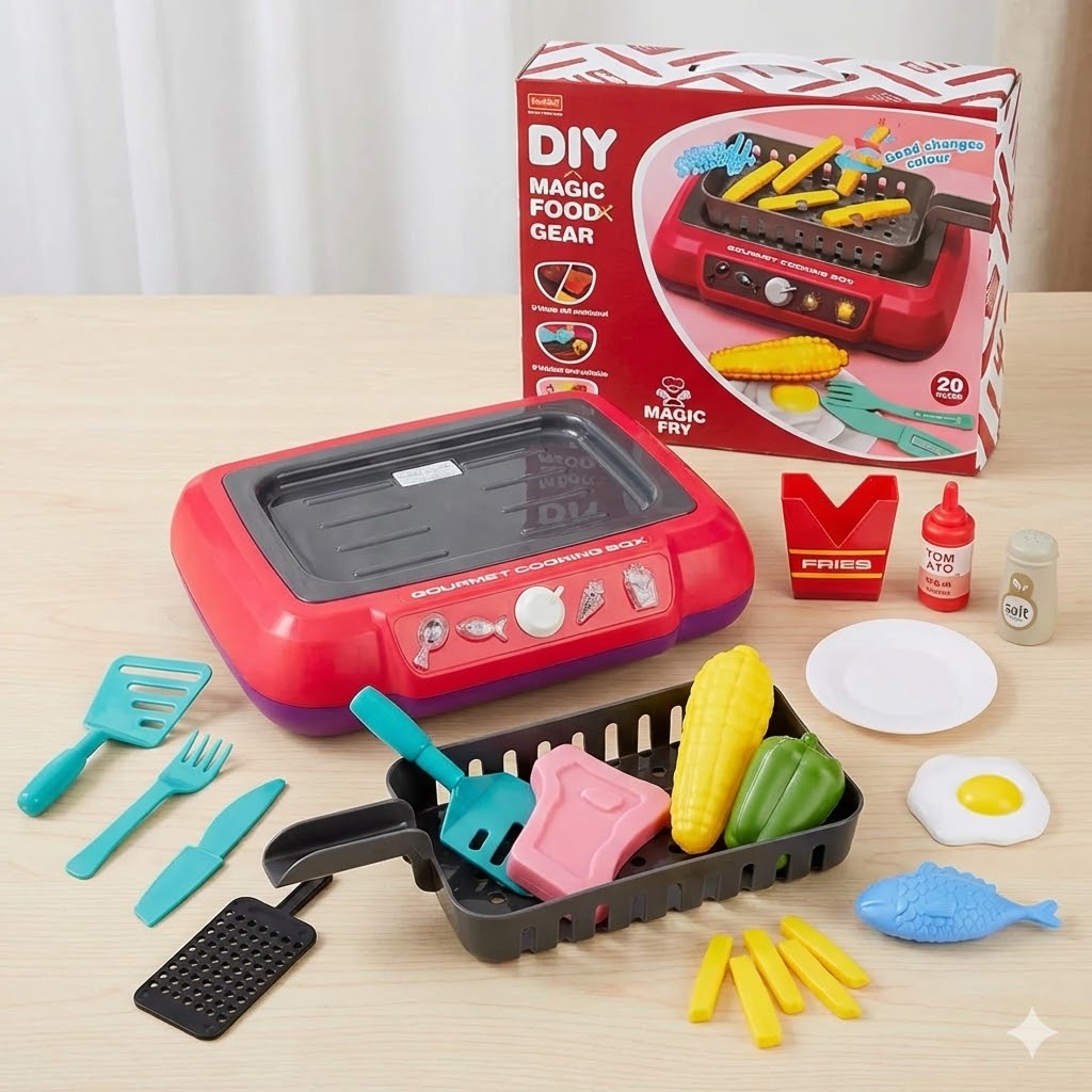 Ovo je trenutak koji deca obožavaju i koji ovu igračku izdvaja od drugih! Kada mališan stavi odrezak, ribu ili krompiriće u "fritezu", oni postepeno menjaju boju, dobijajući izgled pečene hrane. Ovaj zabavni vizuelni efekat daje deci osećaj da zaista pripremaju pravi obrok, držeći njihovu pažnju i oduševljenje satima.