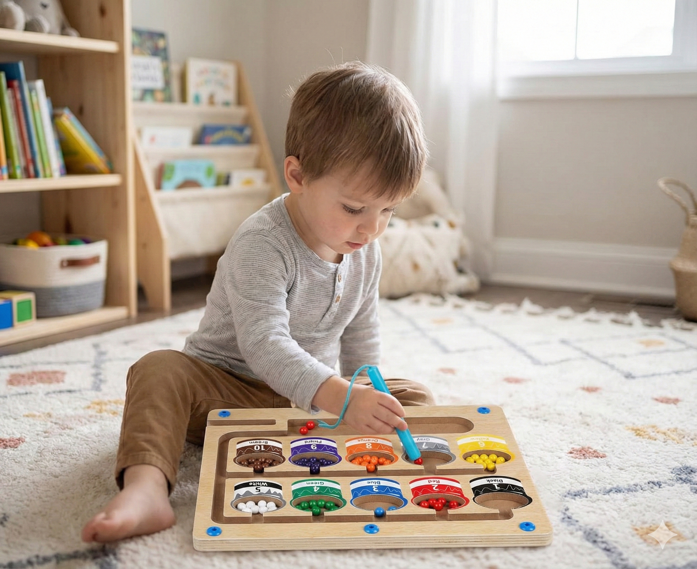 Gde ide crvena kuglica, a gde plava? Zadatak je jednostavan, ali moćan: sortirati boje i brojeve na prava mesta. Kroz ovu aktivnost deca uče da prepoznaju boje, broje, razumeju odnose količina i razvijaju logičko razmišljanje i sposobnost rešavanja problema.