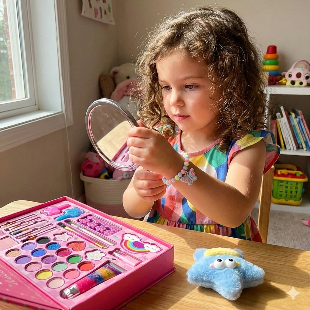 Ovo nije samo običan set, ovo je pravo blago za male stiliste! Sa neverovatnim 51 elementom, deca dobijaju sve što im je potrebno – od karmina i senki do prelepog nakita. Bogat sadržaj omogućava sate istraživanja, kombinovanja i igre bez prestanka. Danas mogu biti princeze, a sutra pop zvezde!