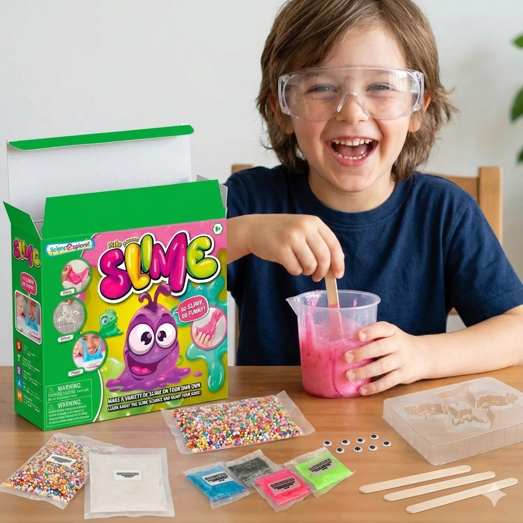 Pretvorite dnevnu sobu u pravu malu laboratoriju! Ovaj set nije samo igračka, već uvod u svet hemije i nauke. Dete prati jasan eksperimentalni postupak, uči o merama i reakcijama, i na kraju biva nagrađeno sopstvenom kreacijom. Osećaj ponosa kada sami naprave savršen slime je neprocenjiv.