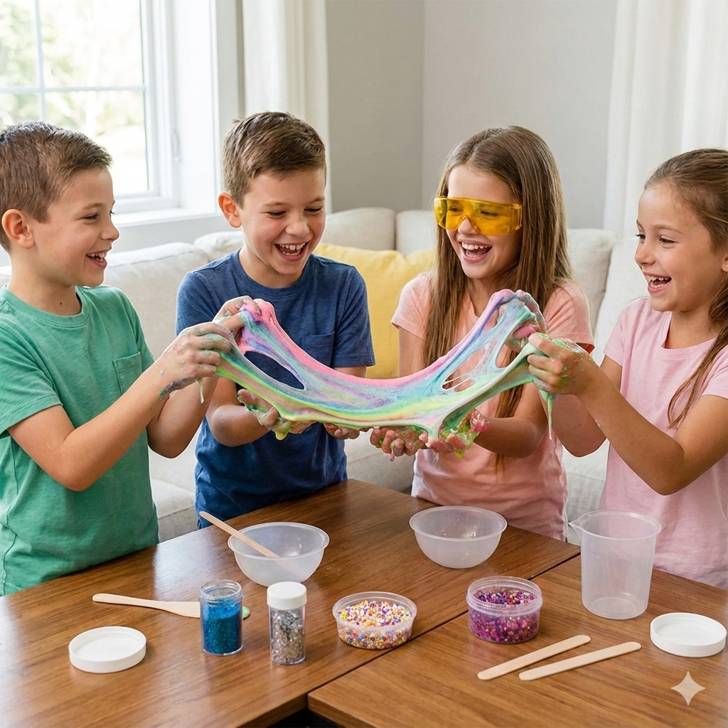Slime je zabavniji u društvu! Ovaj set je predviđen za 2 do 4 igrača, što ga čini idealnom aktivnošću za rođendane, druženje sa braćom i sestrama ili kišna popodneva sa drugarima. Deca uče da dele materijale, sarađuju i upoređuju svoje ljigave kreacije, razvijajući socijalne veštine kroz smeh.
